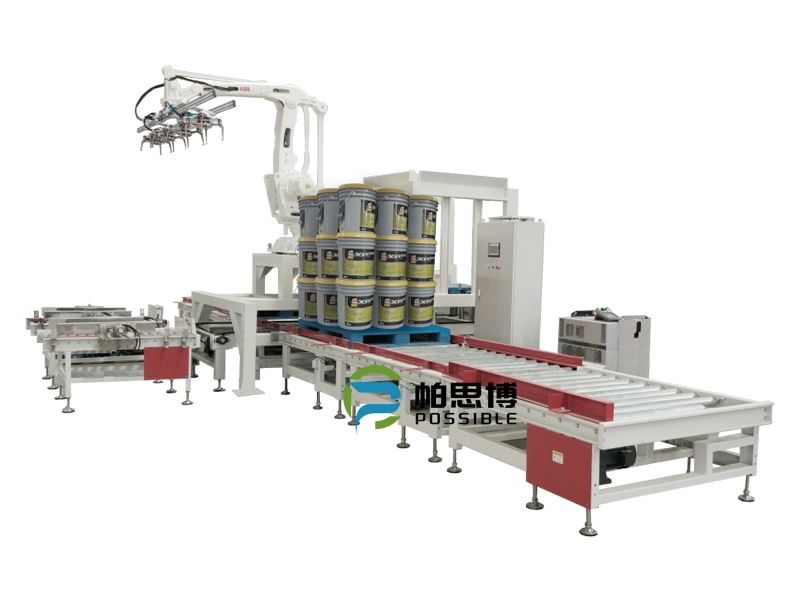 码垛机是将纸箱包装或膜包后的产品,通过机械器人搬运放在托盘上,进行自动堆码,输至实托工位,便于叉车运送至厂库储存,取代人工在车间码垛作业,减轻个人体力劳动,缩短非工作时间,提高企业生产效率。